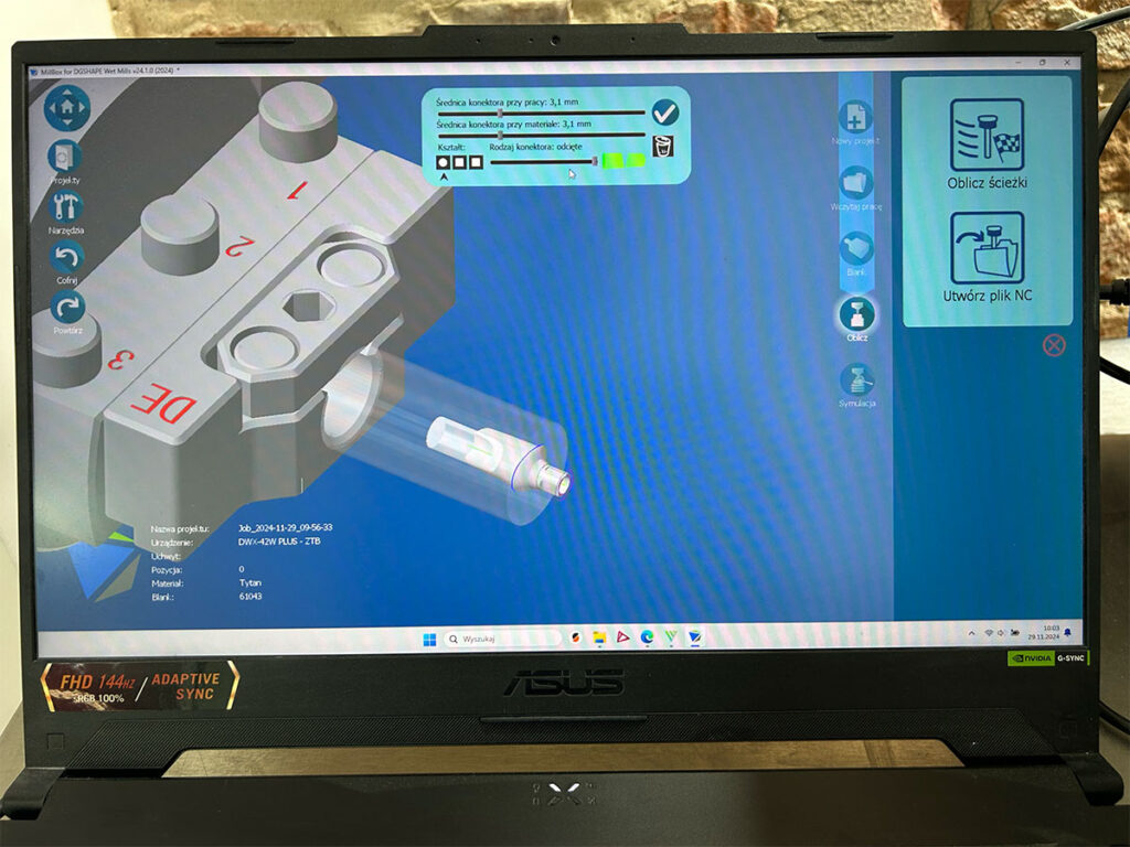 • Produkcja: Przy użyciu drukarki 3D lub frezarki CNC wytwarzane są precyzyjne elementy protetyczne.